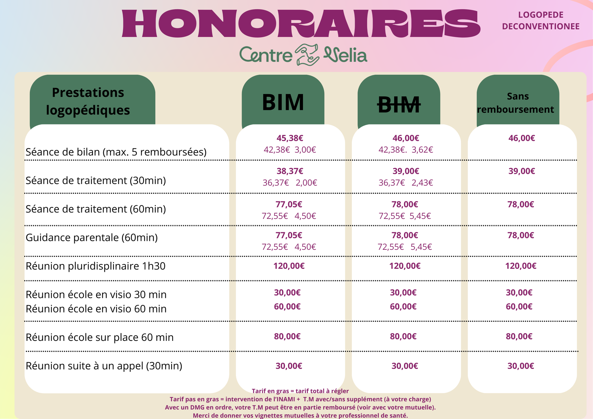 *Bilan logopédique : Les séances de bilans sont à payer entièrement par le patient auprès du professionnel.